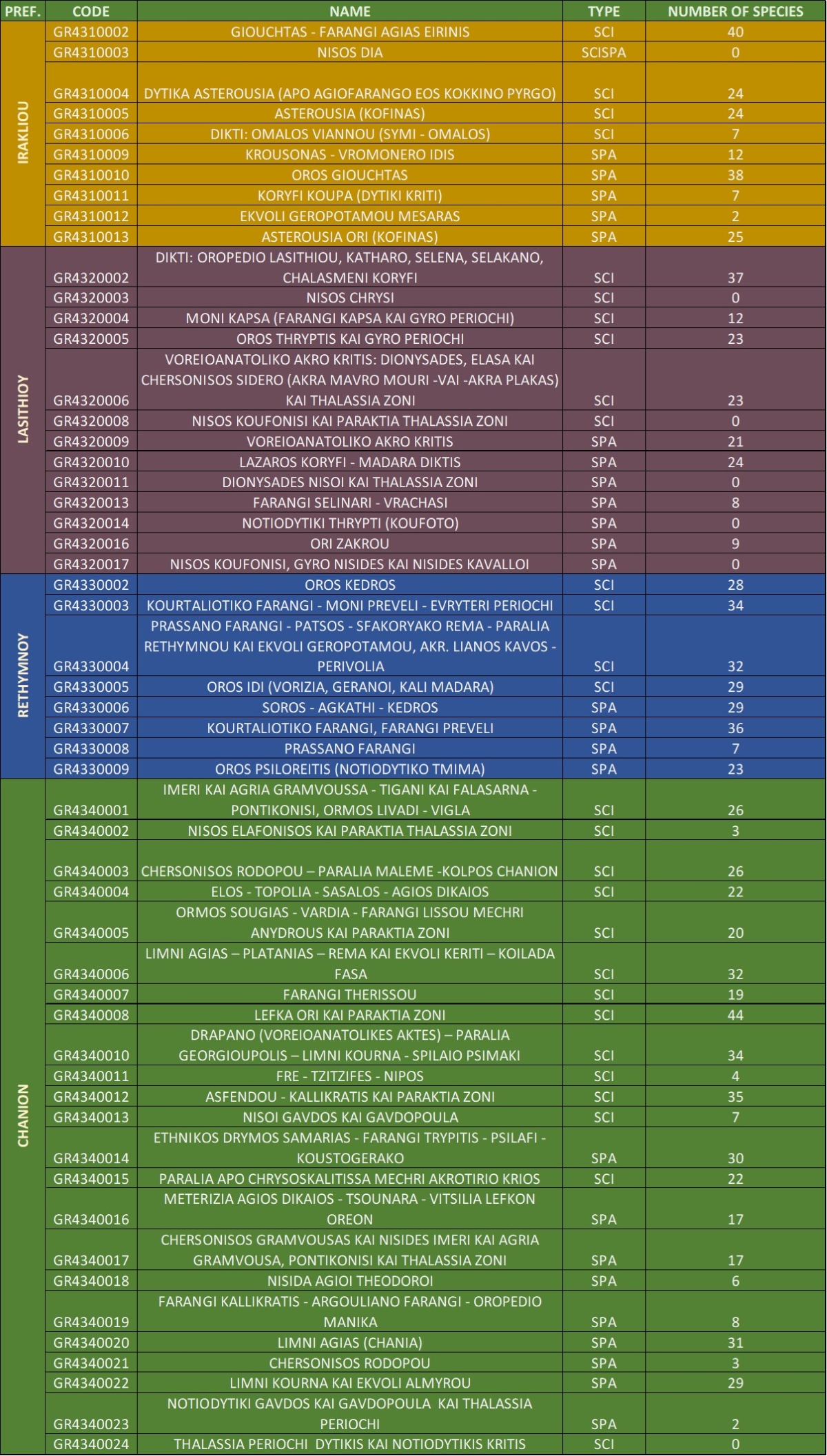 The island of Dia, which constitutes both a Site of Community Importance (SCI) and a Special Protection Area (SPA), is the only site that bears the same code for both types of protected areas.
