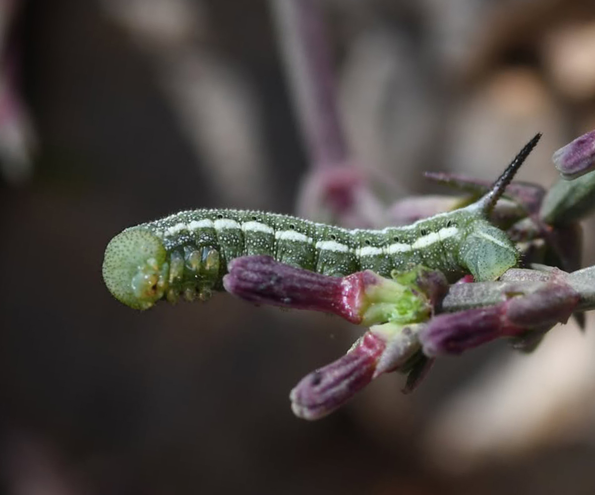 Η κάμπια είναι ολιγοφαγική σε Rubiaceae (Galium aparine, Asperula rigida, Galium mollugo, Rubia peregrina, Rubia tinctorium) και τρέφεται στα φύλλα.